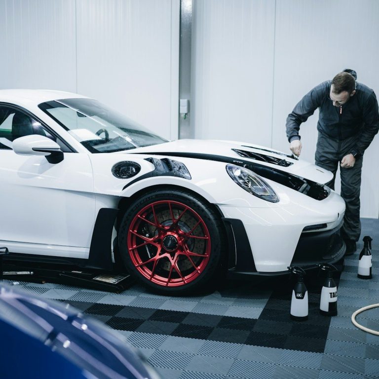 Bei der professionellen Lackaufbereitung wird der Lack in mehreren Stufen bearbeitet. Durch Schleifen und Polieren werden Kratzer, Oxidationen und Lackdefekte entfernt. Anschließend wird der Lack versiegelt, wodurch eine glatte Oberfläche und ein intensiver Tiefenglanz entstehen. Diese Behandlung bringt auch ältere Lacke wieder in einen nahezu neuwertigen Zustand.