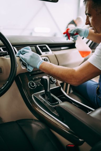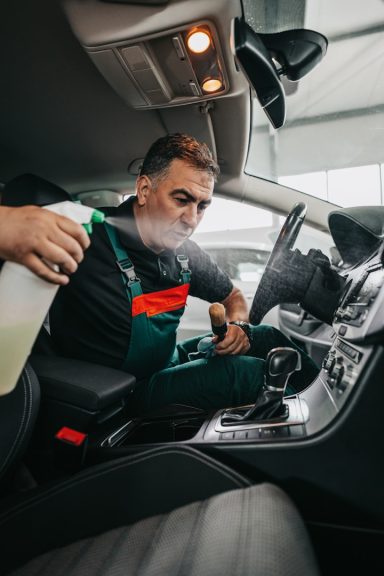 Bei der Schnellreinigung werden Cockpit, Armaturen und wichtige Innenflächen gereinigt und gepflegt. Staub, Fingerabdrücke und leichte Verschmutzungen werden entfernt. Diese Reinigung ist ideal für eine schnelle Auffrischung des Innenraums.