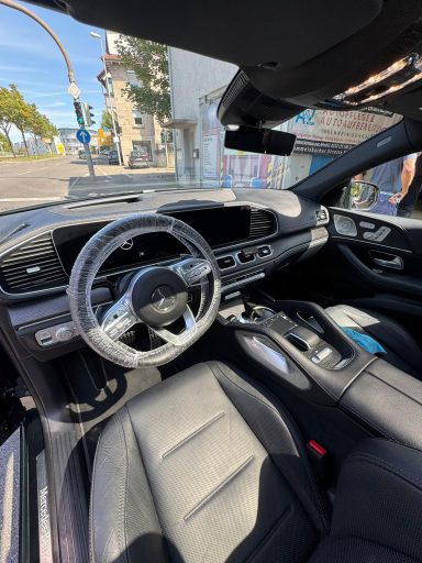 Lederflächen im Fahrzeug werden gründlich gereinigt und anschließend gepflegt. Verschmutzungen, Fett und Gebrauchsspuren werden entfernt, während spezielle Pflegeprodukte das Leder geschmeidig halten. Dadurch wird das Material geschützt und seine Lebensdauer verlängert.